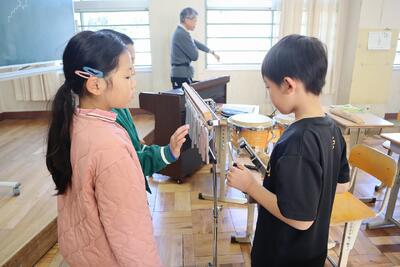 3年生の音楽の授業では「おかしのすきなまほう使い」の教材で、子供たちが楽器の音色や組合せを工夫しながら、活動しています。