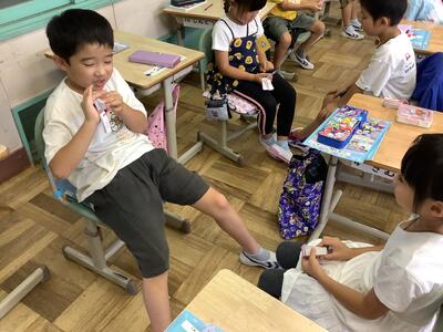 ペアで、たし算カードを使って学習しました。すらすらと、たし算の答えが言えるように頑張っています。