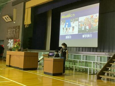 1学期の終業式がオンラインで行われました。校長先生の話では、各学年の輝いていた場面がスライドで紹介されました。