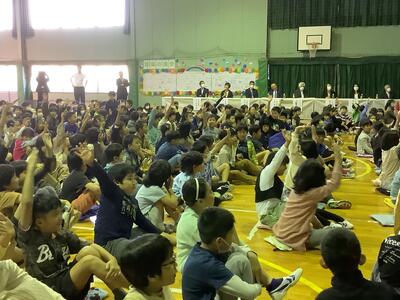 午後は、4,5,6年生が芸術鑑賞をしました。パフォーマンスに釘付けの子供たち。大きな拍手が、1つになり、演技をする方に届きました。鑑賞の仕方もさすが高学年です。日本トップレベルのチャレンジする姿からたくさんのことを感じることができたと思います。