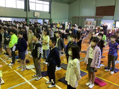 1時間目に5年生全体で、「いじめ防止集会」を行いました。「いじり」から考える友達関係。何気なく言っている言葉、それは相手にはどのように伝わっているのか、相手はどう感じているのか。相手を傷つけずによりより友達関係を作っていく、そのために大切なことは何かなど、映像や先生たちの話を通してこれからの人間関係で大切なことを考える時間となりました。