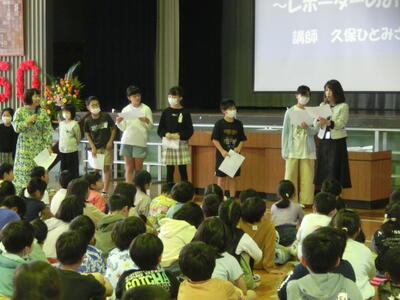 沢地小が開校して50周年、今日は記念行事が行われました。午前中には1,2,3年生がソフェアーロの芸術を鑑賞しました。素晴らしいパフォーマンスに大きな歓声が体育館に広がりました。子供たちは感激の気持ちを思う存分表現していました。素直に表現できる沢地の子、すてきです。最後に3年生の代表児童が、御礼の挨拶をしっかりと伝えることができました。