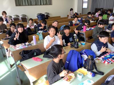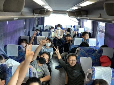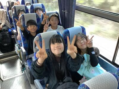 修学旅行1日目、楽しい活動ができました。今ホテルに向かっています。全員、元気です。今日のブログは、最終とさせていただきます。ホテル到着後の様子は、明日投稿しますので、お楽しみに