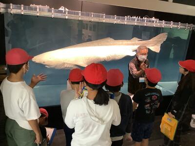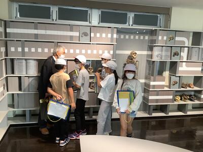 2年生が上手にリードしながら、ペアで仲良く館内を見学しています。