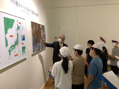 最初の見学施設である「ふじのくに地球環境史ミュージアム」につきました。様々な展示品を見たり、ガイドさんの話を聞いたりしながら、自然の歴史、これからの自然について考えています。