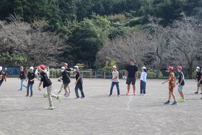 秋の日差しの下、昼休みには、子供たちが元気に外遊びを楽しんでいます。ドッジボール、鬼ごっこ、鉄棒。子供たちの笑顔が広がります。