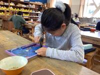 今日は釘打ちです。ビー玉の動きを確認しながら、丁寧に釘を打っていました。どんな作品が完成するのか今から楽しみです。