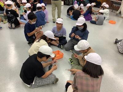 元気に出発した3・4年生、富士川楽座に到着し、まずはワークショップの時間です。