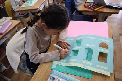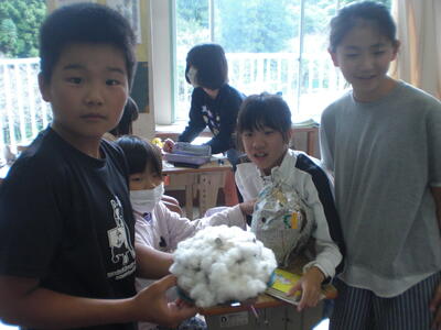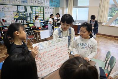5年2組では、沢地カーニバルに向けて、展示品の製作中でした。