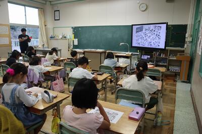 5年生が、家庭科の授業で外部講師の方に、味覚について教えていただきました。授業の中では、様々な材料によるだし汁を飲み比べ、だしの種類当てクイズをしました。見事正解する児童がとても多かったです。最後に、だしになる鰹節を削る体験もしました。味覚について学習する貴重な時間になりました。