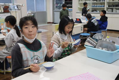 5年生の家庭科の授業では、調理実習を行いました。お米を鍋を使って炊いてみました。火加減を調整しながら、おいしいご飯を炊きあげ、一口ずつ味わって食べていました。学習ボランティアの方にも、御支援いただきました。ありがとうございました。