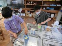 図工の「空きようきのへんしん」の学習です。空き容器に紙粘土でかざりをつけ、鉛筆立てや小物入れなどを作っています。今日は、仕上げにニスを塗りました。素敵な作品がたくさんできました。校内作品展で展示しますので、楽しみにしていてください。