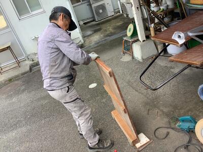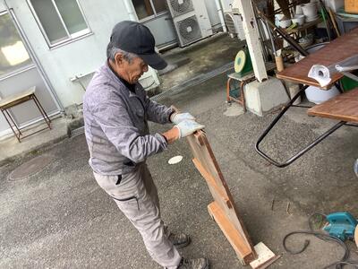 今日お会いしたときは、跳び箱の踏み切り板で子どもたちが怪我をしないようにと、ヤスリをかけていました。