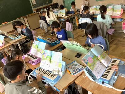 グループになって、鍵盤ハーモニカの練習をしていました。