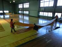 11/27(日)、各町内の担当者が集まり、「避難所開設訓練」が行われました。シートを使って体育館内を区分けしたり、防災無線の動作を確認したりするなど、実際に行いながら手順を確認したり、問題点を出し合ったりしました。コロナ禍のため、参加人数や訓練時間に制限がありましたが、実践的でよい訓練となりました。