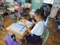 図工の「ギコギコトントンクリエーター」の学習で、コリントゲームを作っています。今日は、枠棒の色塗りをしました。塗りムラや塗り忘れのないように集中して作業を進めていました。