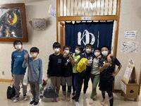 お風呂上がり(左)と班長会議(右)の様子です。