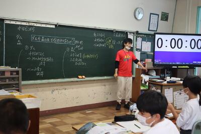 朝の時間に4年生の教室では、子供たちが、保健室の先生と栄養士さんのお話を聞きました。猛暑が厳しい毎日です。「熱中症にならないために、水分をしっかりとりましょう。」とお話がありました。普段と激しい運動をしたとき、どのような水分補給をしたら良いのか、わかりました。栄養士さんからは、ジュースの中に含まれている砂糖の量について、わかりやすく説明をしていただきました。子供たちは、反応しながらしっかりとお話を聞くことができました。自分の身体を自分で守るために、大切なことを知りました。