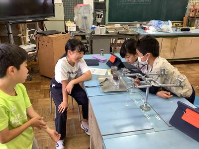 5年生の理科の様子です。メダカの雌雄をヒレに注目して判別しようとしたり、解剖顕微鏡を使ってメダカの卵の様子を観察しました。調節ねじを上手く使って、くっきり見れた時、とても嬉しそうにしている子どもたちでした。