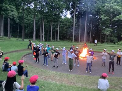 キャンプファイヤーも予定通り外で行うことができました。今日1番の盛り上がりでした!