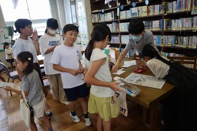 今週も読書旬間です。休み時間になると、図書室に子供たちがたくさん集まります。図書委員の5,6年生も一生懸命仕事を進めています。おみくじを引いて、新しい本と出会ったり、たくさん本を借りてスタンプを集め、しおりをもらったり、子供たちの笑顔が広がっています。