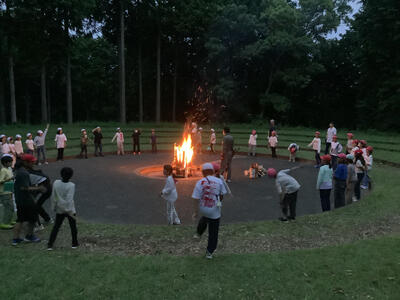 夜にはお楽しみの、キャンプファイヤーが行われました。ファイヤー係の進行で、チェッコリ、マイムマイム、ジャンボリミッキーなど、たくさんの歌や踊りで盛り上がりました!