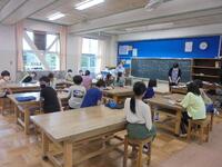 6月下旬からの読書旬間に向けた掲示物を委員会のメンバーが作成している様子です。みんなが使いやすい図書室に向けて、頑張っている姿がとても素敵です。