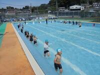 今年度、プールにいち早く入ったのは2年生です。今週いっぱいは低水位なので、余裕の顔で水遊びを楽しんでいました。