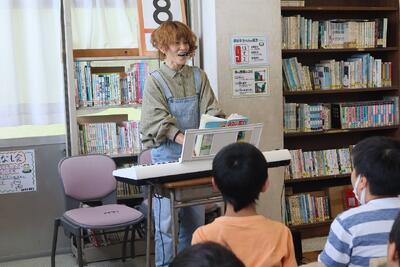 今日の昼休みには、令和5年度初めての「おたまじゃくしの会読み聞かせ」が行われました。図書室には、子供たちが集まり、ボランティアのみなさんの本の読み聞かせを聴き、その後にはシンガーソングライター田中みどりさんと一緒に校歌や歌を歌い、楽しい時間を過ごすことができました。