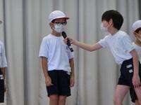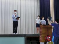 運動会の開会式が行われました。密を避けるため、代表児童のみ体育館に集まり、各教室へ動画で配信しました。