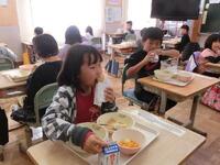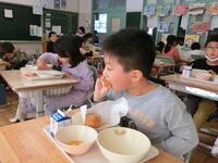 今日の給食は、いつの時代も子供たちに大人気の「あげパン」でした。どの子も幸せそうな顔で、パンにかぶりついていました。