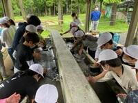 米とぎが始まりました。みんな手際よく米をといでいます。