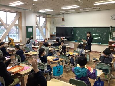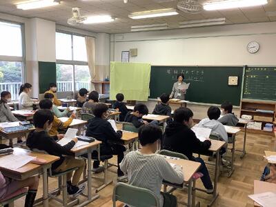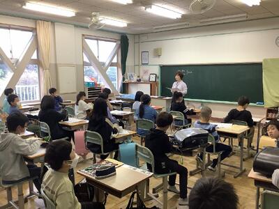 高学年の学級の様子です。どの学級も、子どもたちは落ち着いて話を聞いています。