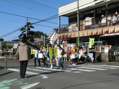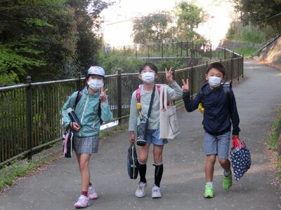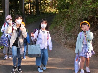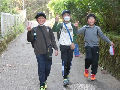 スクールガードさんや地域の皆様に見守られ、子供たちが元気に登校してきました。