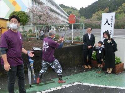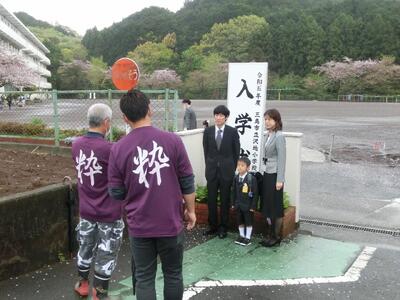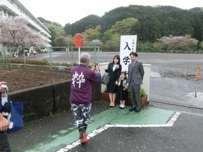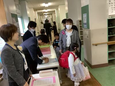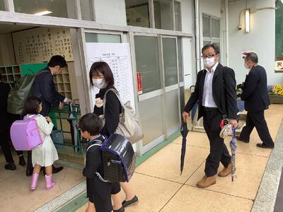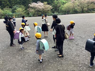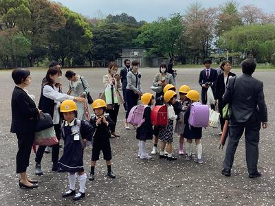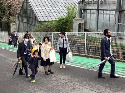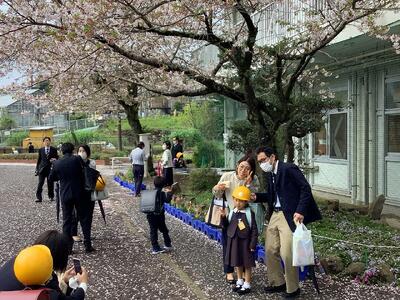 入学式、とても緊張したかもしれません。ぜひ、お家で教室でどんなお話があったか、お家の人に話して見てくださいね。下校の際には雨も上がっていたため、家族や友達とお話したり、一緒に写真を撮ったりしていました。