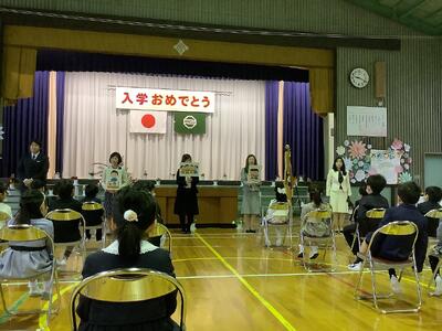 教科書とヘルメットの贈呈がありました。ヘルメットは2年間使用します。教室でもらった教科書も大切にしてくださいね。どんな勉強をするのかいまからわくわくですね。担任発表の際も、先生たちの話しをしっかり聞いていてとても素敵でした。