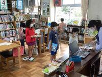 3年生が読書の本を借りている様子です。列にぴしっと並んでいてとてもよいですね。また、教室で待っている間も静かに借りた本を読んでいて、とてもすてきでした!