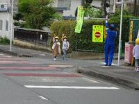 スクールガードさんに見守られながら、安全に下校していました。富士ビレッジ方面の五叉路では、多くの保護者の皆さんが迎えに来ており、子供たちはお母さんやお父さんの顔を見ると、とても嬉しそうな表情をしていました。