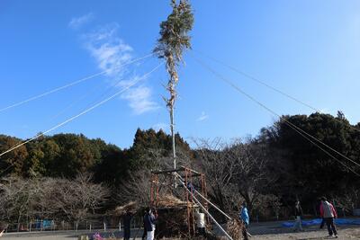 今年も粋なおやじの会の皆様のお力で、沢地小学区のどんど焼きが開催されました。1月18日の午後には、粋なおやじの会の皆様が、準備を行って下さいました。毎年高くなるやぐらは、迫力満点です。