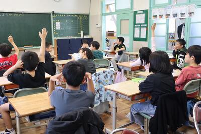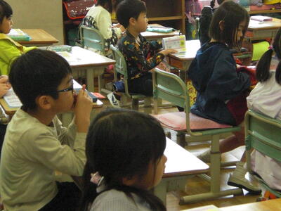 2年生の教室では、学活の時間に「自己紹介ゲーム」をしました。新しい友だちと楽しみながらなかよしになるゲームです。友だちの名前を覚えて、もっとなかよしになれると良いですね。教室いっぱいの笑顔、とてもすてきです。