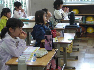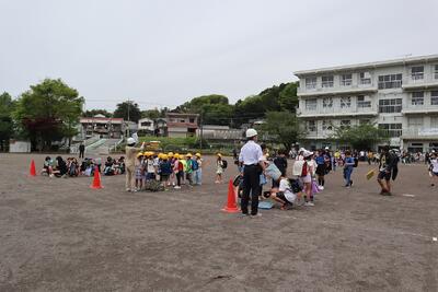 授業参観の後には、自然災害等で御家族にお子様の引取をお願いする際の「引き渡し訓練」が行われました。しっかりと訓練に参加できた子供たちです。保護者も皆様、ご協力ありがとうございました。