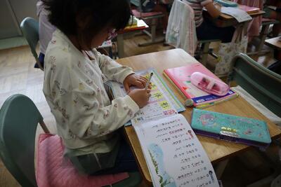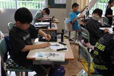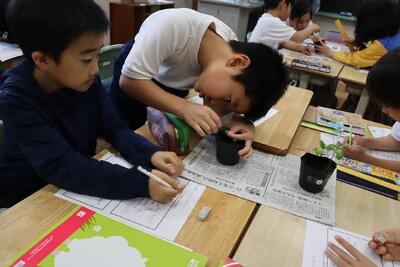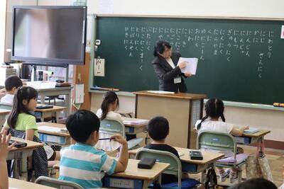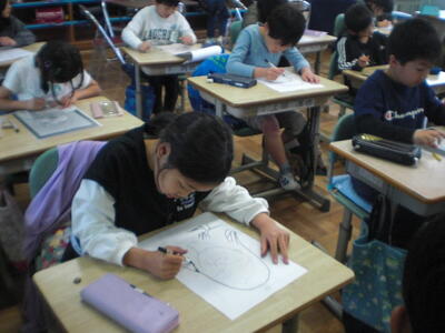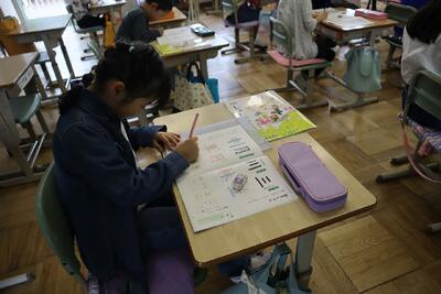 2年生の書写の授業では、子供たちが書き順や字形に気をつけて、学習活動を進めています。姿勢が良く、集中して学習ができるので、上達も早いです。