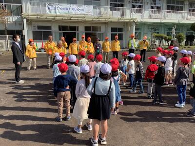 登下校を見守ってくださるスクールガードの皆様の紹介の会が、行われました。町内別にスクールガードの皆さんに自己紹介をしていただ年生の年生の子供たちも笑顔でお話を聞いていました。スクールガードの皆様からは、「元気にあいさつをしてくださいね。」「車に気をつけて、安全に登校してください。」「坂道を走ると、転んでしまうので気をつけましょう。」など、あたたかいお話をいただきました。スクールガードの皆様、これからもよろしくお願いいたします。