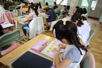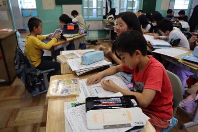 落ちついて真剣に学習に取り組む高学年の様子です。