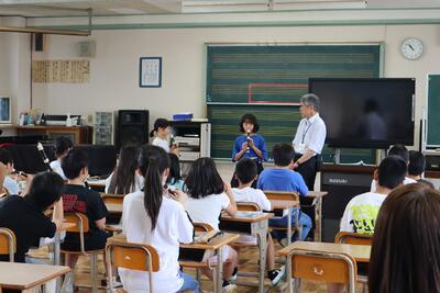 6年生の音楽の授業では、子供たちが「つばさをください」の歌声を、音楽室いっぱいに響かせていました。楽しみながら生き生きと歌唱する6年生の歌声に、学校運営協議会の委員の方々からは自然に拍手がおこりました。