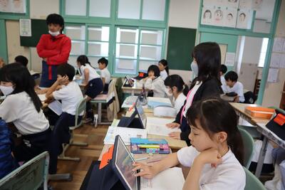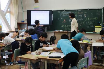 4年生の社会の授業では、「静岡県の広がり」の学習活動を進めています。学習の見通しをもち、子供たちが自分の学びを自分ごととしてとらえて、取り組んでいます。今日の授業では、一人で黙々と課題に取り組む子、友達と会話をしながら学習する子、様々なスタイルで集中している姿がみられました。自分で調べて気付いたり、友達の気付きから学習が深まったりしていきます。
