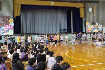 今日の3時間目には、沢地小に入学して1ヶ月の1年生を歓迎する会が、全校で行われました。ペアの6年生と手をつないで入場した1年生、にこにこ笑顔でのスタートです。計画委員会を中心に「Hello!1年生の会~ようこそ沢地小へ~」、「新しい仲間になった1年生をあたたかい気持ちでむかえよう」のめあてに向かって、全校で創りあげた会です。「出発進行!沢地を知ろうクイズ」では、じゃんけん列車で全校の子供たちが交流をしながら、沢地小のことをたくさん知ることができました。クイズに正解すると、元気に両手を挙げて体育館いっぱいに歓声が響き渡りました。ゲームのあとは、全校で校歌「われら沢地小」を歌い、全校児童の歌声が一つになりました。最後に、1年生からありがとうのダンスと歌の発表です。一生懸命歌って踊る1年生を、手拍子で盛り上げながら応援するお兄さん、お姉さんも笑顔になりました。沢地っ子のあたたかさがぎゅっと集まった会でした。これからも「わたしも大切 あなたも大切」を合言葉に、あたたかさいっぱいの沢地小にしていきましょう。