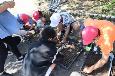 昼休みには、環境・園芸委員会の5,6年生が、花壇に植える花の種まきをしてくれました。ありがとうございました。