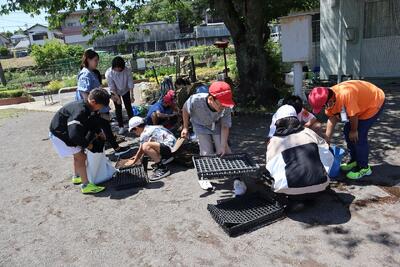 4年生が、池の掃除をしてくれました。綺麗になった池で、カメの永遠(とわ)ちゃんが元気に泳いでいます。