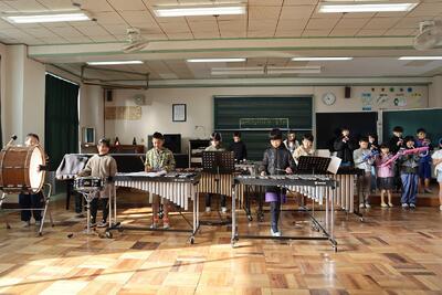 今日の4年2組の音楽の授業では、茶色のこびんの合奏の発表会をしていました。リズミカルに楽器の音色が重なり、すてきな合奏に仕上がりました。